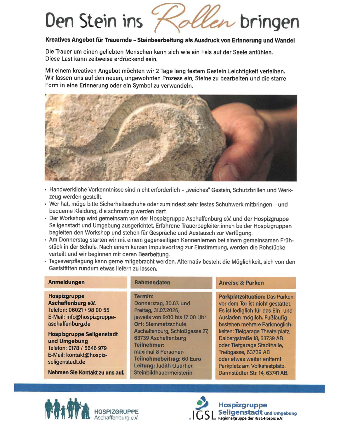 Weitere Informationen und Anmeldung über der Hospizbüro Aschaffenburg.