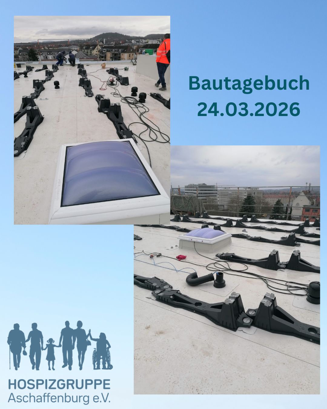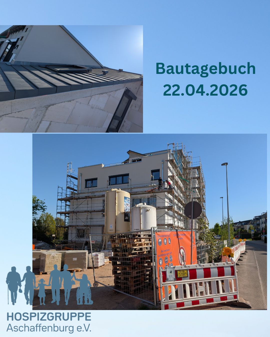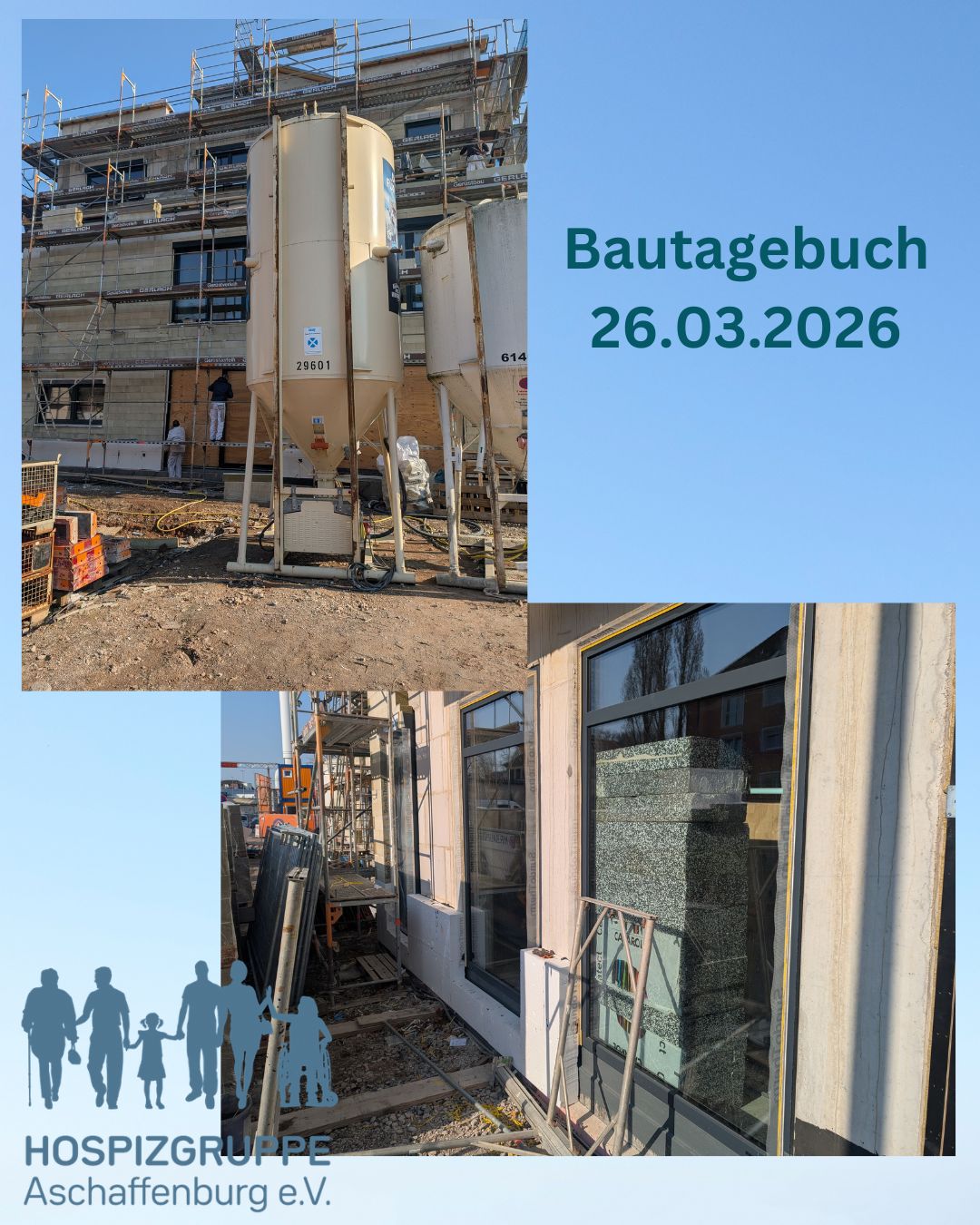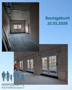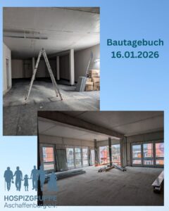 Im zweiten Obergeschoss – unser zukünftiges Tageshospiz – werden aktuell die Fenster eingesetzt. Bald ist also alles dicht.