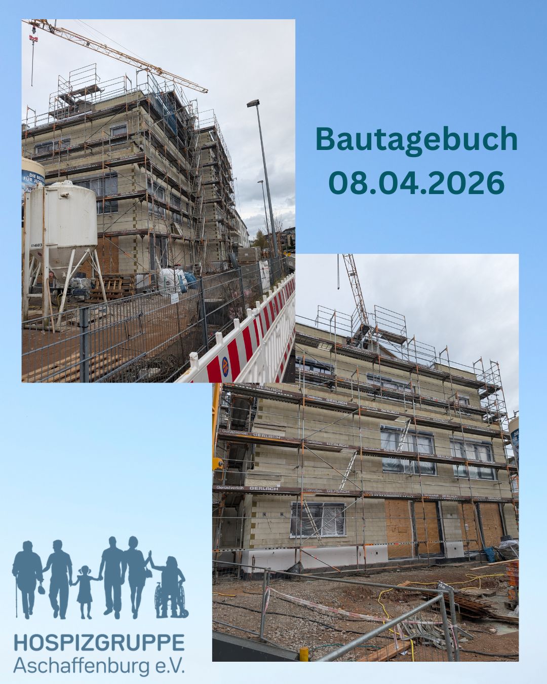 Es geht weiter. Gerade wird die Filigrandecke im 2. OG aufgebracht und bewährt. Nächste Woche wird diese dann betoniert, um dann mit der Außenmauer des 2. OG`s für unser neues teilstationäres Hospiz beginnen zu können. Im Hintergrund legen wir gerade Fußbodenbeläge und Fenster fest. Auch die Ausgestaltung des Saals im EG sowie die Konferenzräume im 1. OG haben uns in den letzten Wochen intensiv beschäftigt.